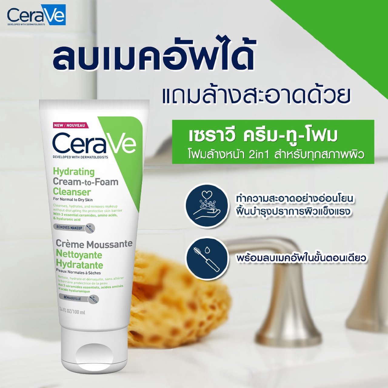 เซราวี ไฮเดรติ้ง ครีม ทู โฟม คลีนเซอร์ 100มล.