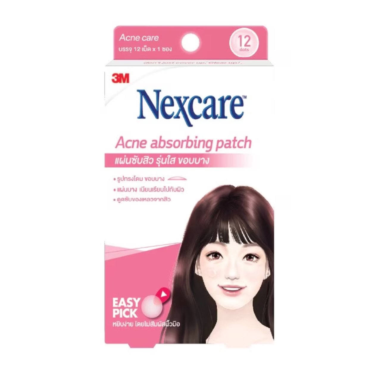 Product Feature -Acne absorbing patch is made from hydrocolloid that absorb acne -Dome shape helping absorbing Acne and thin edge to fit smoothly with face -More transparent with thinner and clearer, even with makeup -Good adhesion and not easy to peel off -Patented 'Easy pick' is applied, so it can be used cleanly without sticking to fingers and contamination How to use -Wash your face and keep your face dry -Pick up 'Easy Pick' with Acne patch from plastic -Cover it pimple and pull off 'Easy Pick' patch -Press around to help acne patch stick better on your face -Change new patch when hydrocolloid changes to white color -Change new patch on every 12 hours