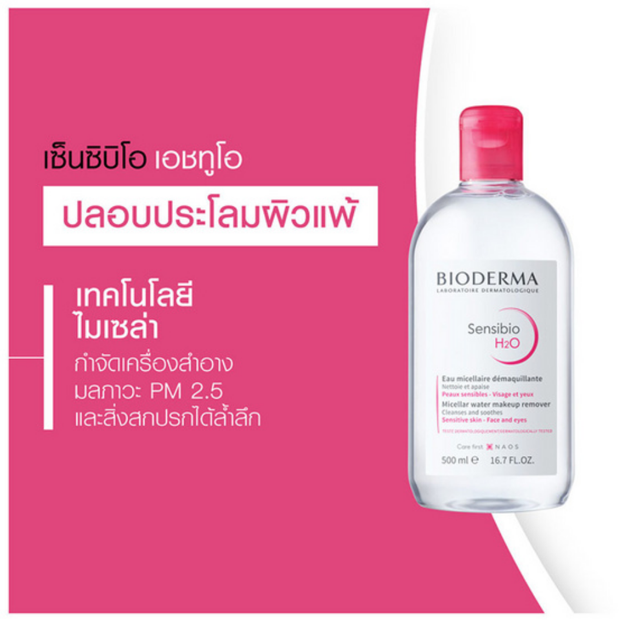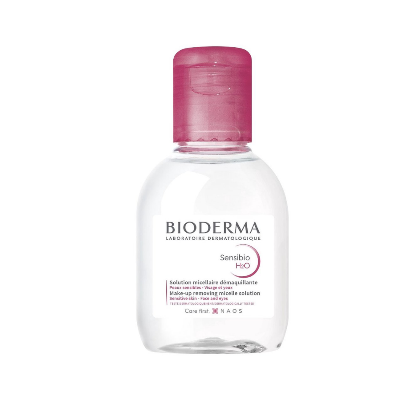 BIODERMA SENSIBIO H2O for sensitive skin 100 ML Gently cleanses and removes make-up: Micelles composed of glycerol ester, a mild surfactant that instantly captures makeup and pollution •The biomimetic sugars complex (DAF?+ FructoOligoSaccharides) increases the most sensitive skin’s tolerance threshold, soothes and prevents pro-inflammatory risks. Daily use morning & evening. Soak a cotton pad with Sensibio H2O. Cleanse/remove make-up from the face and eyes. Repeat application until the cotton pad is perfectly clean. Gently pat the skin to dry it. No rinsing required.