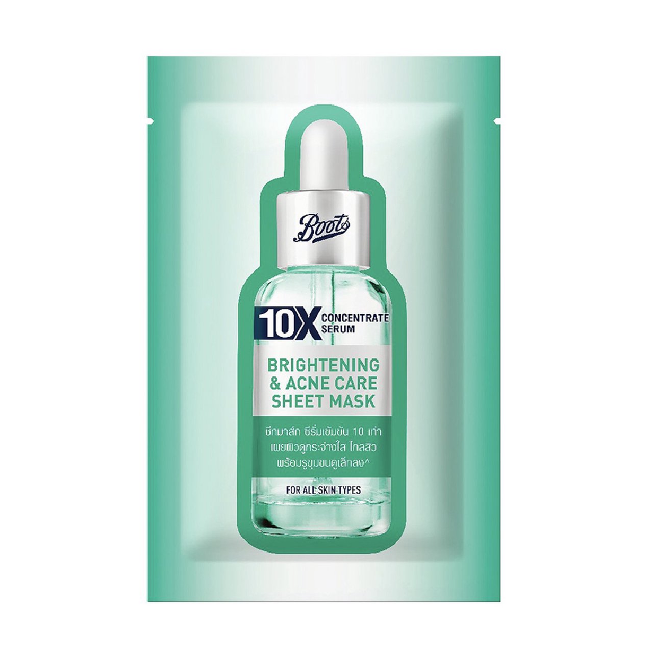 บู๊ทส์ 10เอ็กซ์ คอนเซ็นเทรท ซีรั่ม ไบรท์เทนนิ่ง แอนด์ แอคเน่ แคร์ ชีท มาส์ก 25 มล.