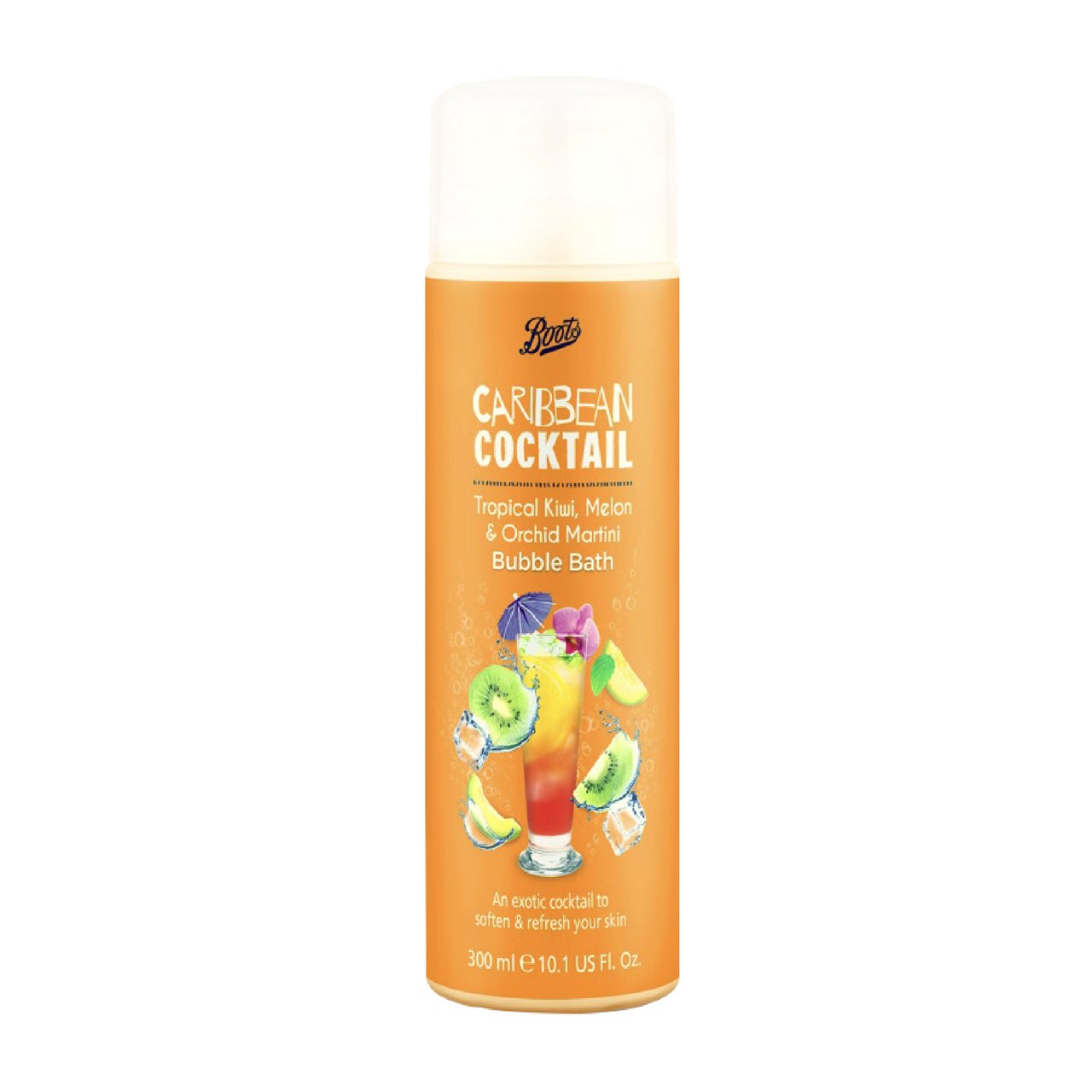 Boots Caribbean Cocktail Tropical Kiwi, Melon & Orchid Martini Bubble Bath 300 ml. Transport yourself to the Caribbean with this buble bath contaning an exotic blend of ingredients with extracts of Melon, Orchid and Kiwi fruit water. This Bubble Bath is specially formulated to remove impurities and leave your skin feeling soft and refreshed. Directions: Shake well before use. For use in the bath, pour under running water. For use in the shower, apply onto a sponge or directly onto your damp skin.