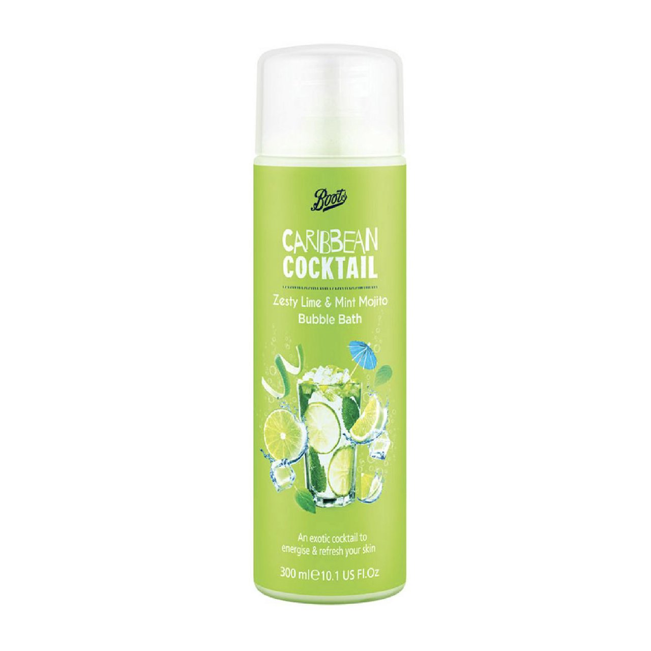 Boots Caribbean Cocktail Zesty Lime & Mint Mojito Bubble Bath Transport yourself to the Caribbean with this bubble bath containing an exotic blend of ingredients with extract of Lime and Mint. This Bubble Bath is specially formulated to remove impurities and leave your skin feeling energised and refreshed.