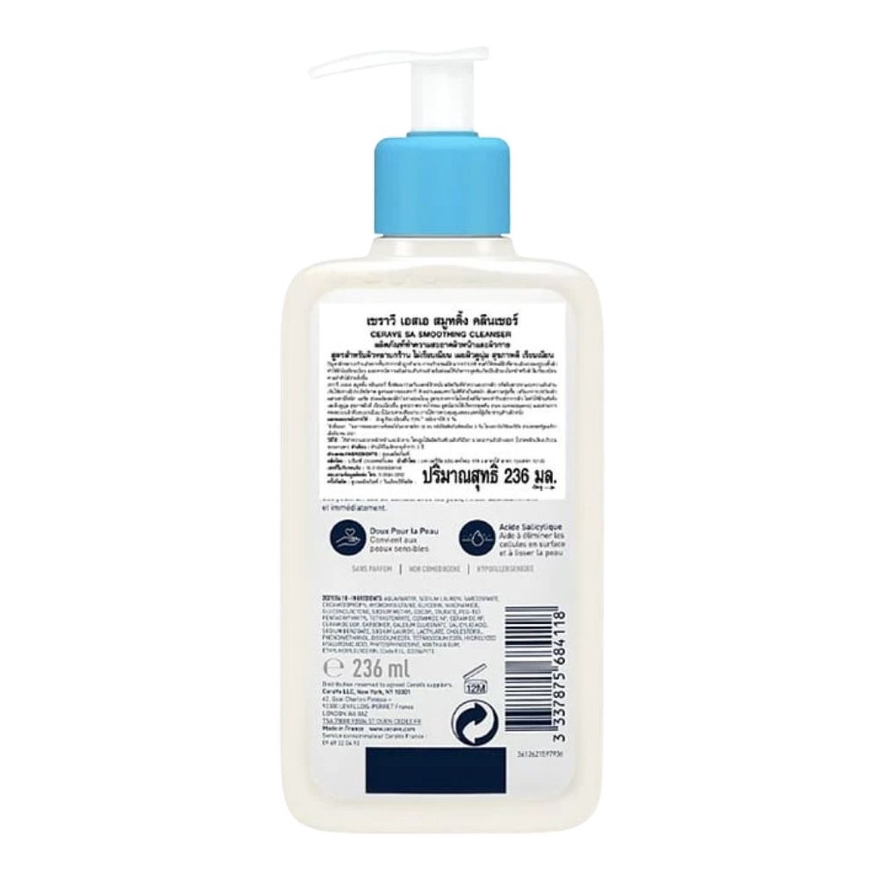 CeraVe SA Smoothing Cleanser with Salicylic Acid 236ml Developed with dermatologists, the gel formula of the CeraVe SA Smoothing Cleanser gently exfoliates the skin with Salicylic Acid, to smooth dry rough & bumpy skin. CLEANSES & SMOOTHS: Removes dirt and oil whilst smoothing rough & bumpy skin. Also suitable for keratosis pilaris GENTLY EXFOLIATES: Salicylic Acid helps to exfoliate the skin while Hyaluronic Acid retains the skin's natural moisture ESSENTIAL CERAMIDES: Contains 3 essential ceramides (1, 3, 6-II) to protect the skin’s natural barrier GENTLE ON SKIN: Free of physical exfoliants, fragrance free & non-comedogenic DEVELOPED WITH DERMATOLOGISTS. How to use Massage cleanser onto wet skin, then rinse thoroughly.