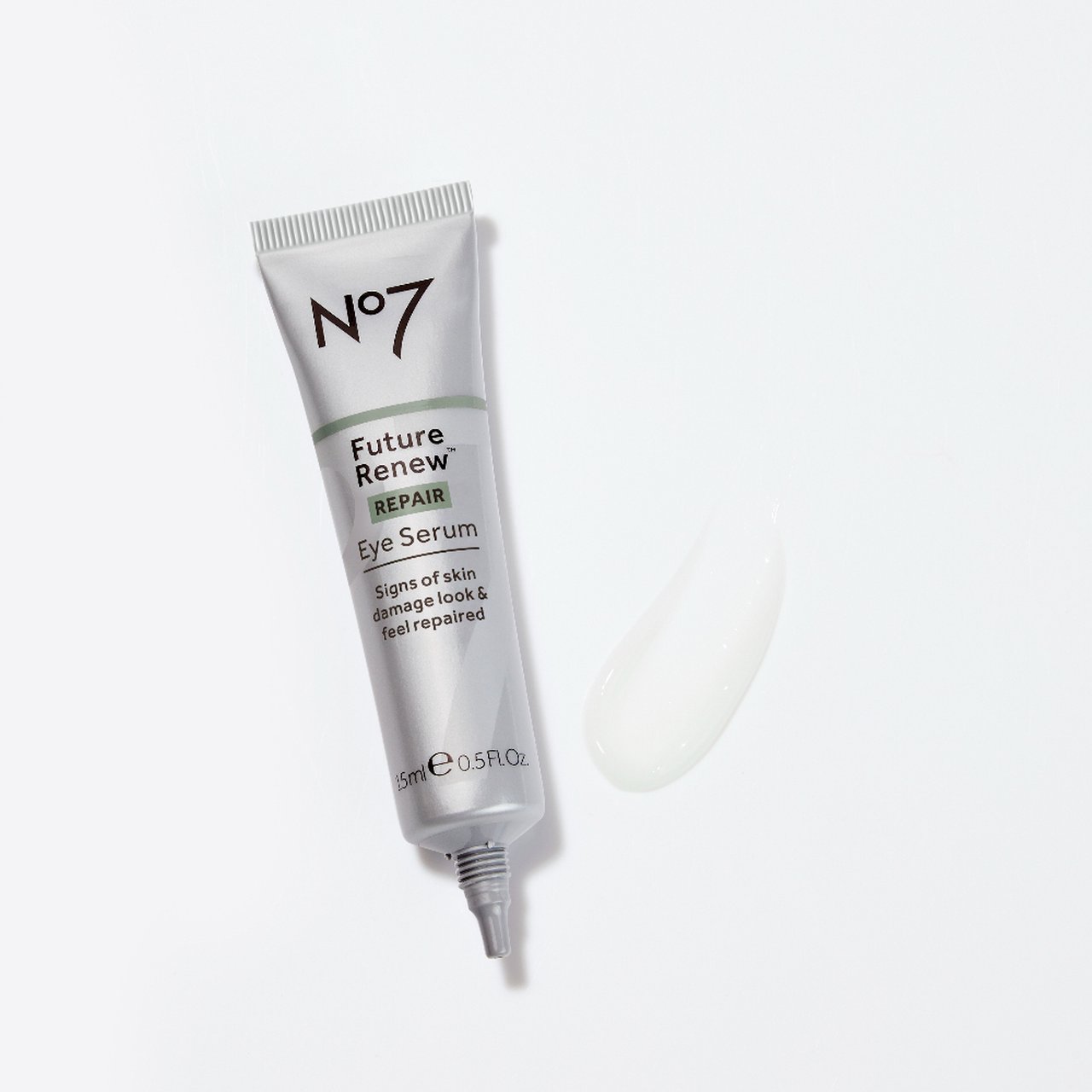 No7 Future Renew Repair Eye Serum 15 ML. Expertly developed for the delicate eye area, No7's NEW Future Renew? Eye Serum reverses visible signs of skin damage in 8 weeks. The skin around the eyes is thinner and more delicate than elsewhere on the face, meaning it is more susceptable to damage. This eye serum is expertly formulated to reverse visible signs of damage around the eyes, such as the appearance of fine lines and wrinkles, lost elasticity, dry skin and uneven skin tone and texture. It is powered by Pepticology?, No7's new patent-pending peptide technology, developed over the course of 15 years by world-leading scientists. Exclusive to No7's Future Renew? range, this cutting edge techonology supports the skin's natural self-repair process. The skin around the eyes is thinner and more delicate than elsewhere on the face, meaning it is more susceptable to damage. This eye serum is expertly formulated to reverse visible signs of damage around the eyes, such as the appearance of fine lines and wrinkles, lost elasticity, dry skin and uneven skin tone and texture. It is powered by Pepticology?, No7's new patent-pending peptide technology, developed over the course of 15 years by world-leading scientists. Exclusive to No7's Future Renew? range, this cutting edge techonology supports the skin's natural self-repair process. How to use : Use morning and evening, dotting around the eyes and gently blending around their contours. WARNINGS: If product gets into the eyes rinse well with water. Ingredients: Aqua (Water), Glycerin, Dimethicone, Butyrospermum parkii (Shea) butter, Cetearyl alcohol, Niacinamide, Polyacrylamide, Glyceryl stearate, PEG-100 stearate, Stearic acid, Tocopheryl acetate, Palmitic acid, C13-14 isoparaffin, Panthenol, Phenoxyethanol, Methylparaben, Laureth-7, Sodium hyaluronate, Ethylparaben, Hydrolyzed rice protein, Sodium polyacrylate, Propylene glycol, Ascorbyl glucoside, Tetrasodium EDTA, Hesperidin methyl chalcone, Steareth-20, Propanediol, Pentylene glycol, Potassium hydroxide, Decyl glucoside, Sodium benzoate, Sodium citrate, Morus alba leaf extract, Chlorhexidine digluconate, Dipeptide-2, Potassium sorbate, Citric acid, Palmitoyl tetrapeptide-94, Palmitoyl tetrapeptide-95, Palmitoyl tetrapeptide-7.