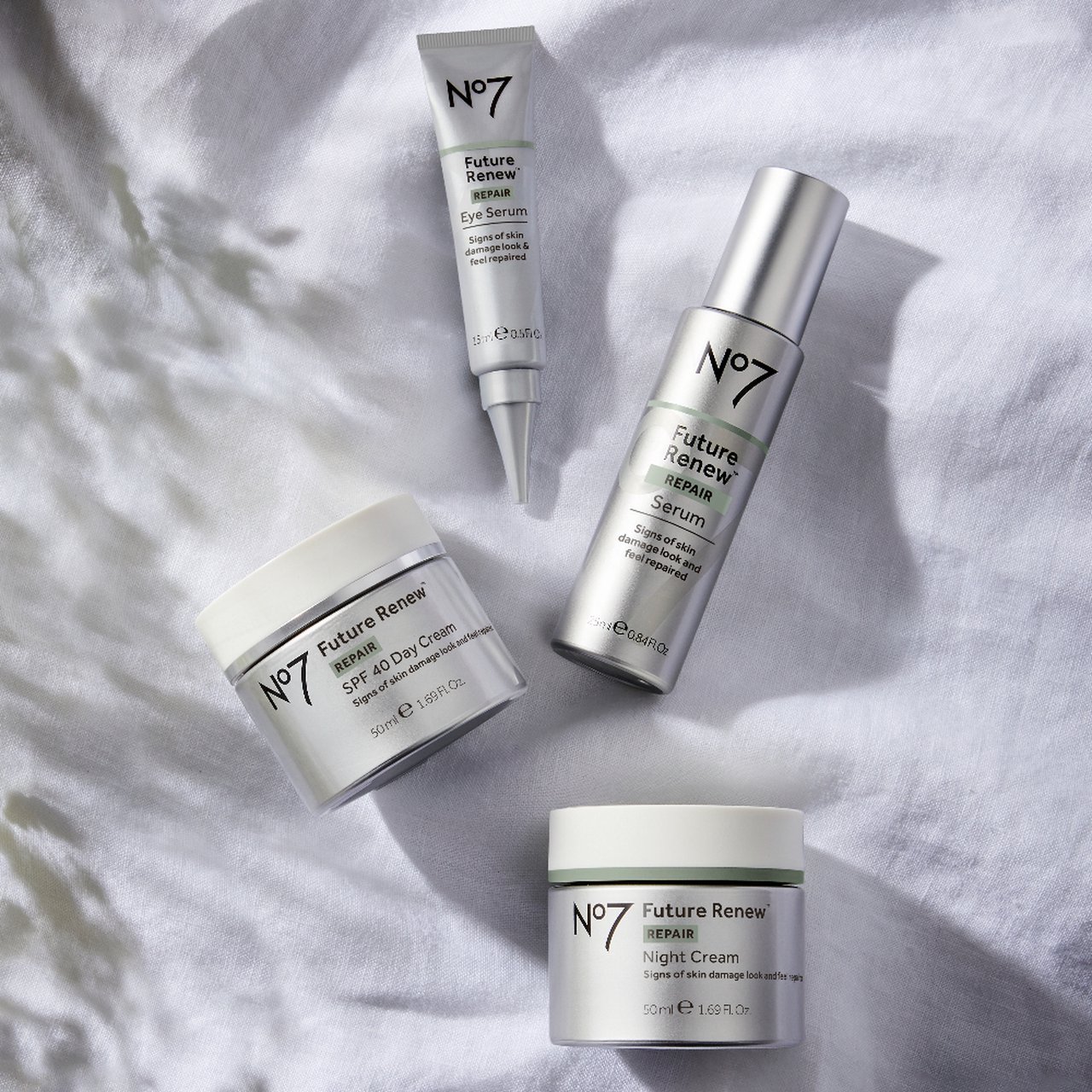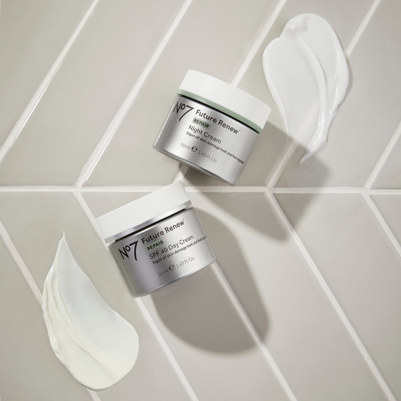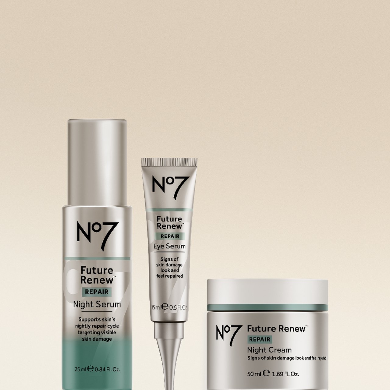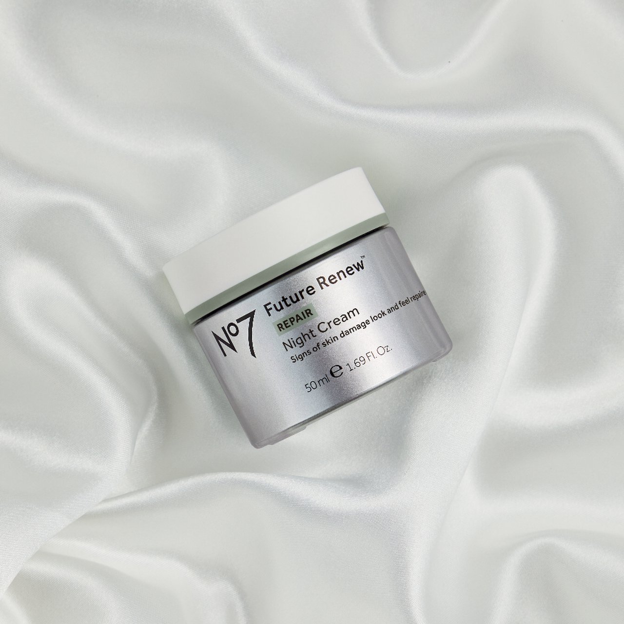 No7 Future Renew Repair Night Cream 50 ML. NEW No7 Future Renew? Night Cream is expertly developed to reverse visible signs of skin damage while you sleep. The ability for our skin to repair itself while we sleep decreases as we age. This night cream is expertly formulated to support skin's natural self-repair process while sleeping and repair visible signs of skin damage, such as the appearance of uneven tone and texture, dry skin and lost elasticity. It is powered by Pepticology?, No7's new and patent-pending peptide technology, developed over the course of 15 years by world-leading scientists. Exclusive to No7's Future Renew? range, this cutting edge techonology supports the skin's natural self-repair process. * SKIN DAMAGE: Proven to repair visible signs of skin damage while you sleep. * REVERSES the appearance of uneven tone and texture, dry skin and lost elasticity. * DEEPLY MOISTURISES: Skin feels moisturised instantly and for up to 72 hours. 82% of women said they had experienced a reversal in the feeling of skin dryness* (*User Trial of 250 UK women in 2022) * INSTANT RESULTS: From the first use, skin feels nourished, softer and smoother. * WAKE UP TO firmer feeling and brighter looking skin. * RESULTS IN 1 WEEK: After one week of use, skin feels supple and skin texture looks more even. * BACKED BY EXPERTS: This formulation is Dermatologist Approved and contains technology developed by world-leading scientists * LIGHTWEIGHT TEXTURE: This indulgent cream absorbs quickly into skin, without leaving a sticky residue How to use : Use every evening, massage in small upward circles over your face & neck. WARNINGS: Avoid contact with eyes. If product gets into the eyes rinse well with water. Ingredients: Aqua (Water), Glycerin, Butyrospermum parkii (Shea) butter, Sorbitan stearate, Dimethicone, Cetearyl alcohol, Caprylic/capric triglyceride, Niacinamide, Ethylhexyl stearate, Polyacrylamide, C13-14 isoparaffin, Tocopheryl acetate, Panthenol, Phenoxyethanol, Dimethiconol, Parfum (Fragrance), Tribehenin, Dipropylene glycol, Sucrose cocoate, Methylparaben, Laureth-7, Carbomer, Sodium hyaluronate, Ethylparaben, Hydrolyzed rice protein, Propylene glycol, Ascorbyl glucoside, Xanthan gum, Tetrasodium EDTA, Potassium hydroxide, Propanediol, Pentylene glycol, Decyl glucoside, Sodium benzoate, Morus alba leaf extract, Lindera strychnifolia root extract, Ethylhexylglycerin, Palmitoyl tetrapeptide-94, Palmitoyl tetrapeptide-95.