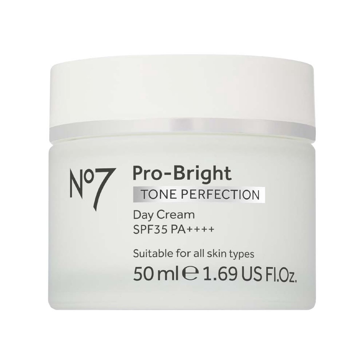 No7 Pro-Bright Tone Perfection Day Cream 50 ML. Secret of skin brilliance. Transform skin translucency, texture and tone in 7 days* Proven to reveal your translucent glow from within the skin surface.^ Instantly hydrates to help skin surface look renewed. Skin looks visibly brighter and more translucent and skin tone appears more even. The appearance of dark spots, circles and pigmentation are reduced. Revealing an even and smooth textured looking tone. Formulated with: 4% Niacinamide 5% AHA Complex – with Lactic Acid, Algae Extract Blend and Centella Extract Blend Benefits and Features: - Scientifically Proven - Dermatologist approved - Developed by experts and tested on Asian skin - Suitable for all skin types REAL RESULTS** 82% Target uneven skin tones for better looking tone transformation (visibly change) 85% Target uneven skin tones for better looking translucency transformation (visibly change) 88% Visibly improves skin brilliance 88% Visibly improves skin evenness 81% Makes you see your skin texture transformation (visibly change) ^Epidermis layer *Result from clinical test using to measure skin brightness using Glossymeter?, measure skin colour using Colourimeter? with illusive photo (Standard and cross polarized) using Visia? CAS conduct by Dermscan Asia between May-June, 2022. **Results from self-evaluation from at least 64 volunteers conducted by Boots, Thailand in 2022. The product cannot change the natural skin colour. However, when use continuously the result depends in the individual skin condition. How to Use: After cleansing, apply 3-4 drops evenly over your face and neck avoiding the lip and eye area. Then moisturise with our Pro-Bright Night Treatment. Use every evening as part of your No7 Pro-Bright skincare regime. Recommend to use with: No7 Pro-Bright Day cream and Night Cream Cautions and Warnings: Sunburn Alert: This product contains an alpha hydroxyl acid (AHA) that may increase your skin's sensitivity to the sun. Use a sunscreen, wear protective clothing, and limit sun exposure during usage of this product and for a week after use of the product has stopped. Avoid contact with the eyes. If product gets into the eyes rinse well with water immediately. Keep out of reach of children. Keep away from heat and direct sunlight. Ingredients: Aqua (Water), Dimethicone, Glycerin, Niacinamide, Neopentyl glycol diheptanoate, Isododecane, PEG/PPG-19/19 dimethicone, C13-16 isoparaffin, Polyacrylate crosspolymer-6, Sodium citrate, Polysorbate 20, Butylene glycol, Caprylyl glycol, Dimethicone/vinyl dimethicone crosspolymer, PPG-26-buteth-26, Polyacrylamide, Tocopherol, Lactic acid, Divinyldimethicone/dimethicone crosspolymer, PEG-40 hydrogenated castor oil, Dimethiconol, Citric acid, Ethylhexylglycerin, C10-13 isoparaffin, C13-14 isoparaffin, Sodium hydroxide, Triethyl citrate, Laureth-7, Sodium metabisulfite, Parfum (Fragrance), t-Butyl alcohol, Cystoseira tamariscifolia extract, Phenoxyethanol, Centella asiatica leaf extract, Linalool, Limonene, Hexyl cinnamal, Alpha-isomethyl ionone, Citronellol. *Please refer to product label