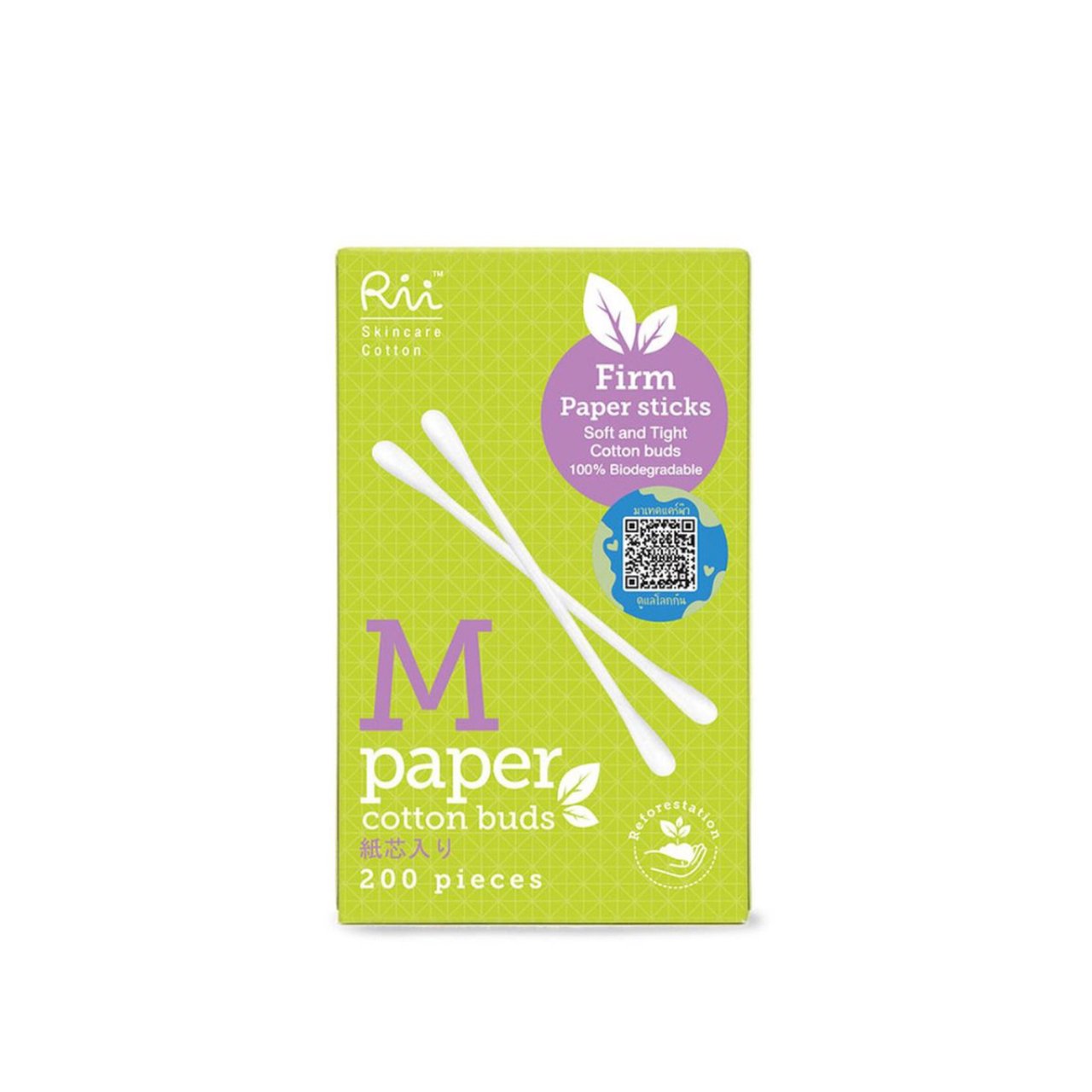 Rii cotton buds with paper sticks, size M. Smooth tips ,durable, firm and eco-friendly rolled paper stick. Durable stem can't be bent easily, safe for cleaning outer ears and eyelids.