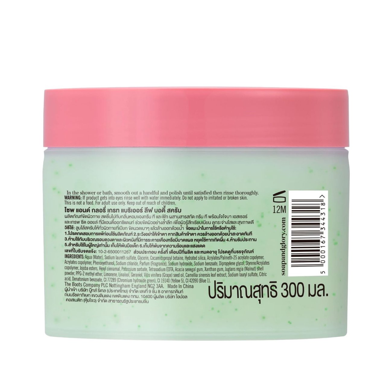 Daydreaming of refreshing time when you have a good time with yourself? Wake up! Our Great Barrier Leaf Refreshing Body Scrub brings that moment to live. With this light texture scrub, blend of Green Tea Extract, Grape Seed Oil and Jojoba Beads that gently exfoliate and rinse off easily for smooth and healthy skin. Our luxurious fragrance, A blended with notes of green tea and fig help you feel fresh, soothe and refresh Benefits and Features - With Green tea extract, Grape seed oil and Jojoba beads - Effectively exfoliate skin and deeply clean - Skin refreshing, moisturising and feeling smooth - Luxurious scrub - Easy to spread / non-sticky / non-greasy / rinse off easily - Long-lasting fragrance - Suitable for all skin types - Dermalogically tested - Vegan Scented with Great barrier leaf A scent-sensational fragrance, luxurious blended with refreshing fragrance of green tea and fig, on a heart of jasmine, Palma and rose, finish on musk and amber base. It's feeling through the freshness that makes you think of green fields How to Use In the shower or bath, smooth out a handful and polish until satisfied then rinse thoroughly. Pair with GREAT BARRIER LEAF Body Wash GREAT BARRIER LEAF Body Lotion Cautions and Warnings If product gets into eyes rinse well with water immediately. Do not apply to irritated or broken skin. This is not a food. For adult use only. Keep out of reach of children. Ingredients Aqua (Water), Sodium laureth sulfate, Glycerin, Cocamidopropyl betaine, Hydrated silica, Acrylates/Palmeth-25 acrylate copolymer, Acrylates copolymer, Phenoxyethanol, Sodium chloride, Parfum (Fragrance), Sodium hydroxide, Sodium benzoate, Dipropylene glycol, Styrene/Acrylates copolymer, Jojoba esters, Hexyl cinnamal, Potassium sorbate, Tetrasodium EDTA, Acacia senegal gum, Xanthan gum, Juglans regia (Walnut) shell powder, PPG-2 methyl ether, Limonene, Linalool, Geraniol, Vitis vinifera (Grape) seed oil, Camellia sinensis leaf extract, Sodium lauryl sulfate, Citric acid, Denatonium benzoate, CI 77289 (Chromium hydroxide green), CI 19140 (Yellow 5), CI 42090 (Blue 1) *Please refer to product label