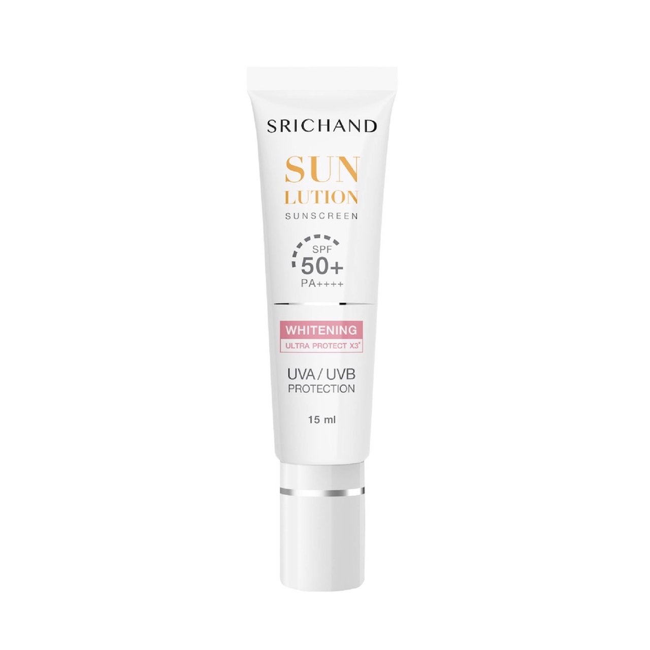 Srichand Sunlution Skin Whitening Sunscreen SPF50+ PA++++ 15ml: Comfortable UV defense to help prevent dark spots with SPF50 PA++++—everyday protection with an easy blend (15 ML).
