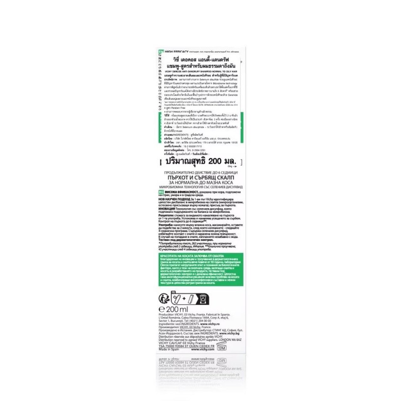 Vichy Anti-Dandruff Scalp Shampoo is designed to reduce dandruff, eliminating up to 100% of visible flakes* and providing anti-dandruff protection for up to 6 weeks**. Containing Selenium DS, Salicylic Acid, Ceramide and Menthol, the shampoo, scalp is left feeling purified, smoothed, cleansed and excess sebum reduced. Formula for normal to oily hair. Key Ingredients: - Selenium DS - Salicylic Acid - Ceramide - Menthol Key Benefits Size: 200ml - Formula for dry hair - Immediate results. Eliminates up to 100% of visible flakes* - 6-week anti-dandruff protection** - Scalp is cleansed and purified When to use: Use as your daily shampoo or as often as you wash your hair.