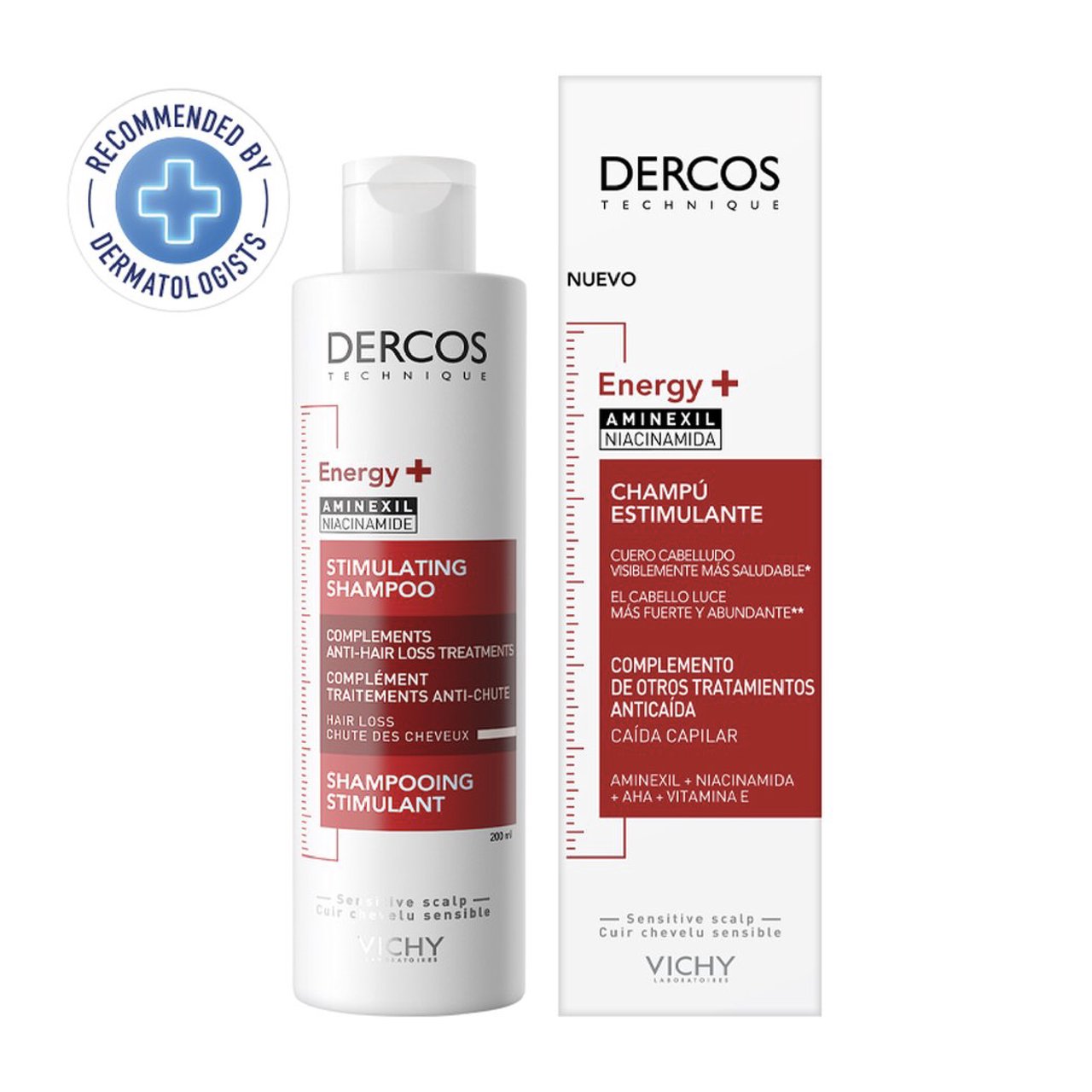 Vichy Energising scalp Shampoo is designed to reduce the rate of hair loss and maintain the density of thinning hair due to hair breaking*. Enriched with patented molecule Aminexil, Vitamins B3, B6 and Provitamin B5, the shampoo reinforces and protects to leave hair feeling nourished and revitalised. Size: 200ml Key Ingredients: • Aminexil • Vitamin B3 and B6 • Provitamin B5 • Vichy Mineralizing Water Key Benefits • Strengthens hair* • Hair is more resistant to breakage* • Reinforces and nourishes hair from root to tip *Instrumental test on sensitised hair. Regime of Dercos Energising Shampoo + Conditioners vs control shampoo. When to use: Use Vichy Energising scalp Shampoo daily or as often as hair is washed.
