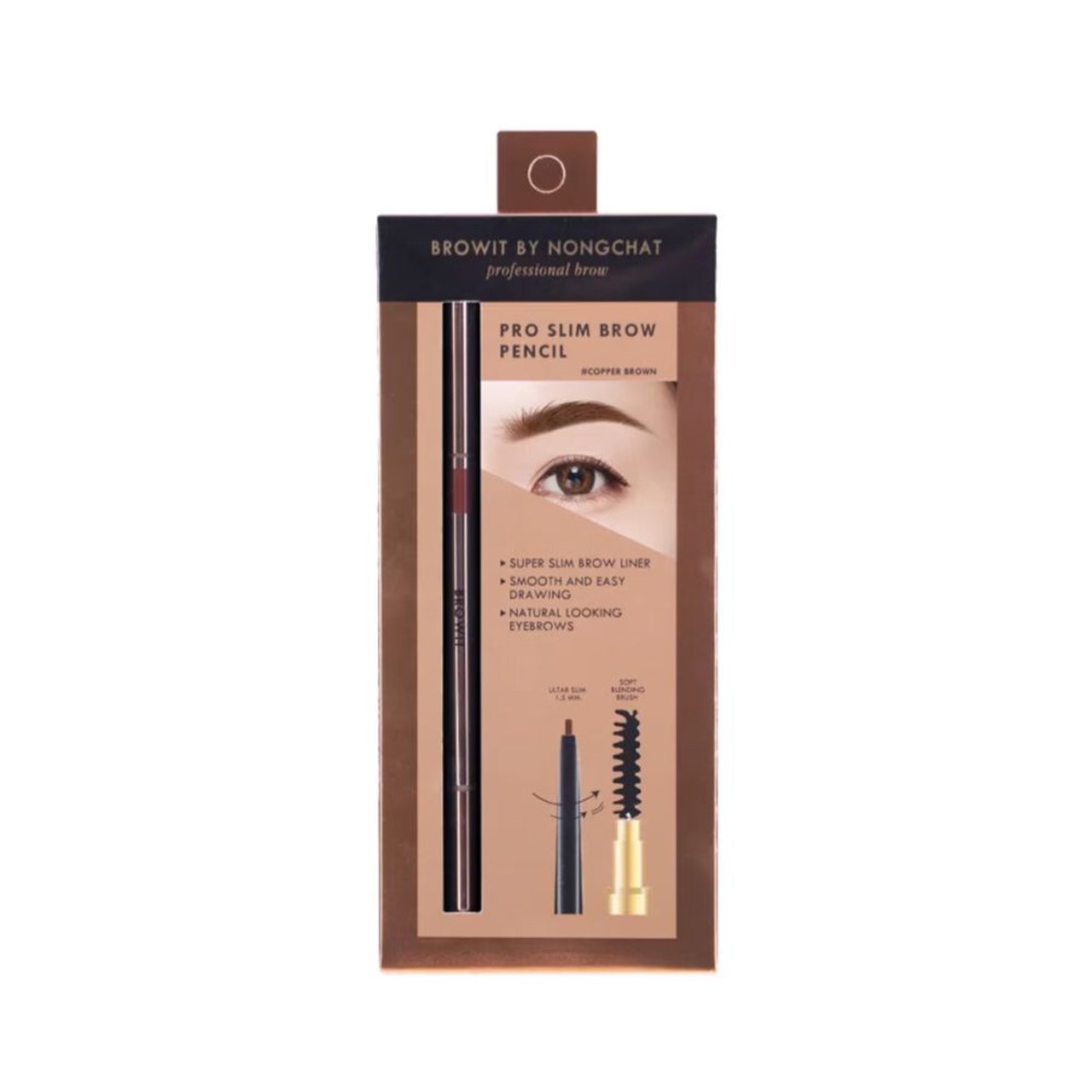 ดินสอเขียนคิ้วเนื้อนุ่ม สีแน่นชัดในครั้งเดียว ให้เส้นที่คมสวยมีความเป็นธรรมชาติ ติดทนนาน ซึ่งออกแบบโดยน้องฉัตร-ฉัตรชัย เมคอัพอาร์ตติสต์ชื่อดังของเมืองไทย เนื้อดินสอคุณภาพดี ไม่เปราะหักง่าย สามารถใช้สร้างเส้นคิ้วแบบเส้นต่อเส้น ทำให้คิ้วสวยดูเป็นธรรมชาติ ทั้งยังใช้เก็บรายละเอียดคิ้วได้อย่างง่ายดาย มาพร้อมแปรงปัดคิ้วที่ขนนุ่ม ไม่แข็ง ไม่ก่อให้เกิดการระคายเคืองกับผิวบริเวณคิ้ว
