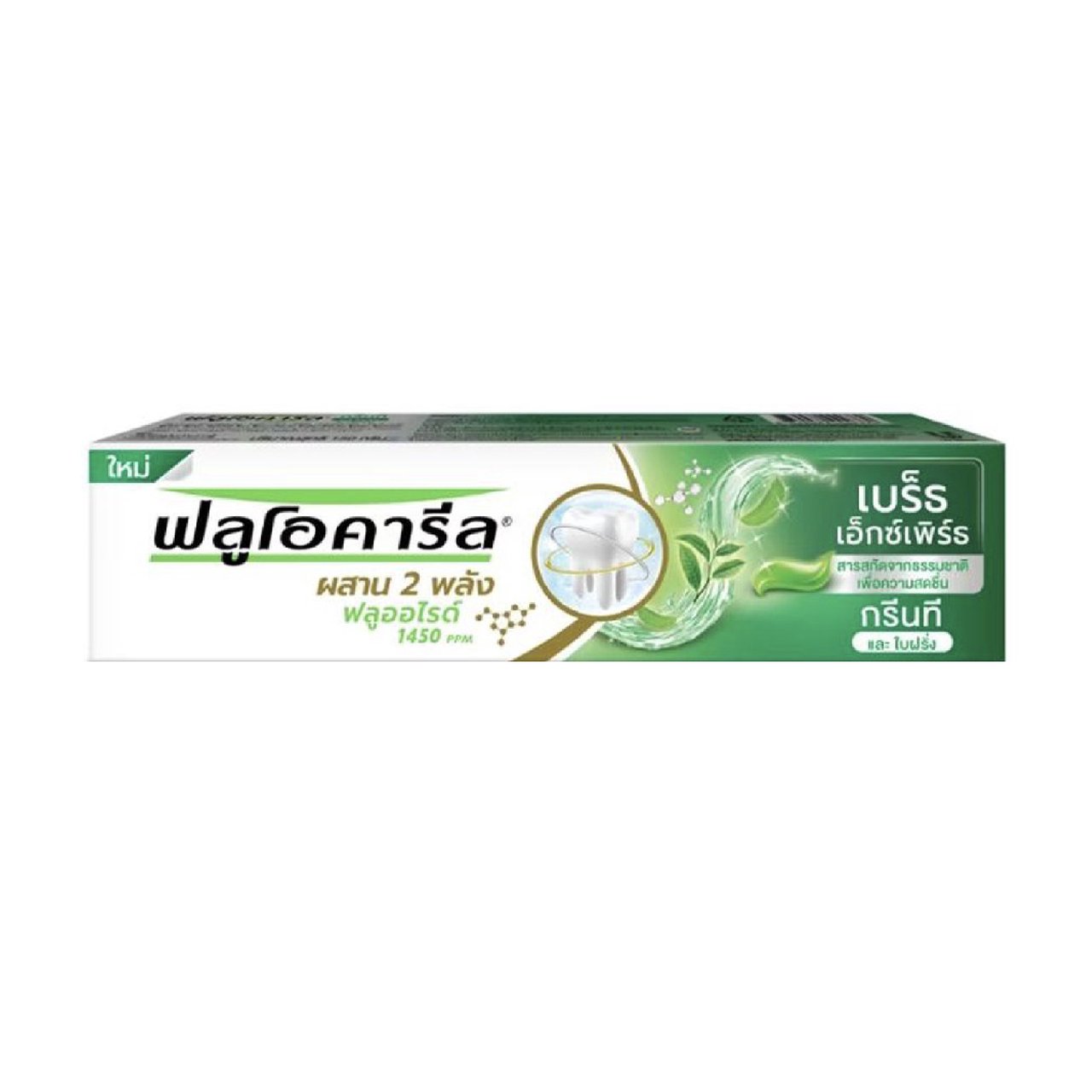 ยาสีฟันฟลูโอคารีล สูตรชาเขียว 160 กรัม ช่วยป้องกันฟันผุและลดกลิ่นปาก พร้อมคุณประโยชน์จากสารสกัดชาเขียว