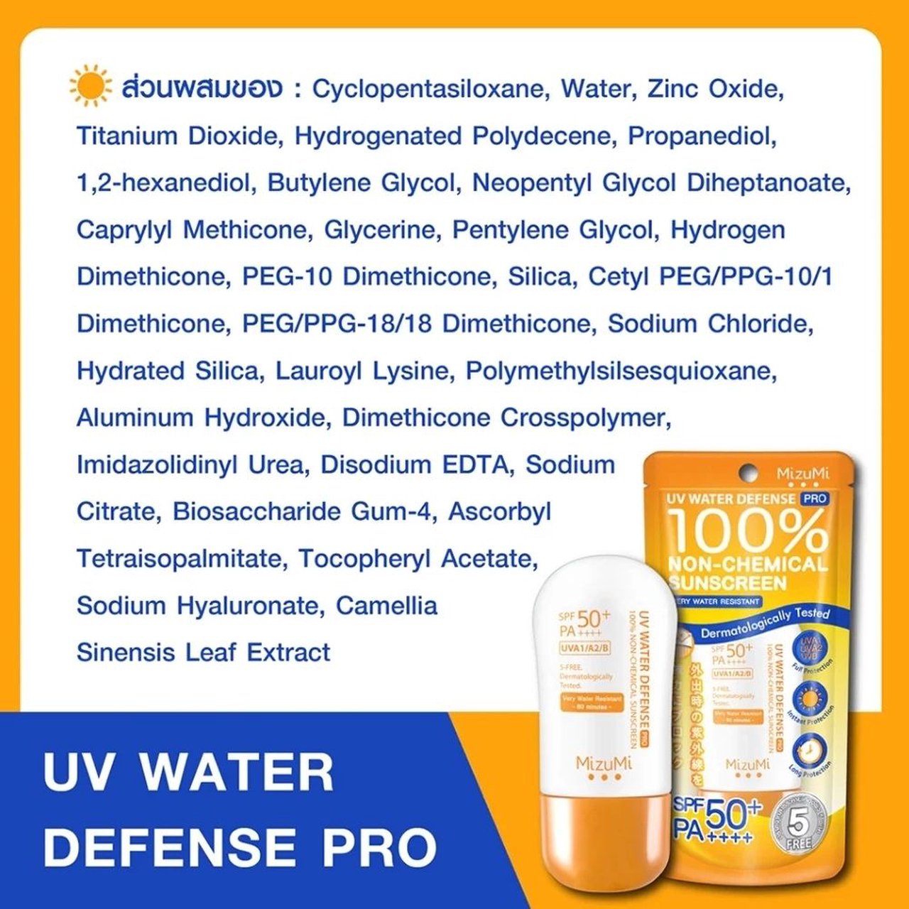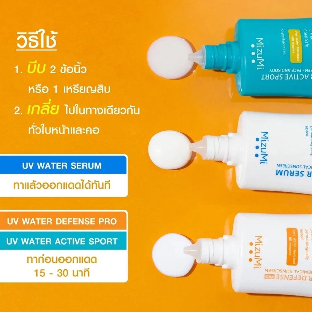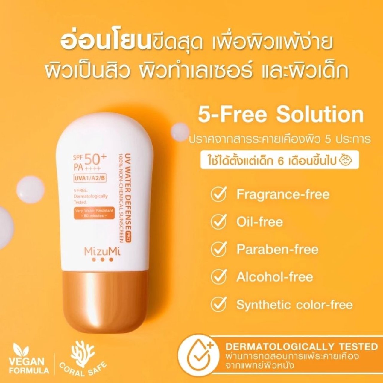 ครีมกันแดดสูตรกันน้ำ ปราศจากสารกันแดดแบบเคมี 100% จากมิซึมิ หลอดส้มสูตรปรับปรุงใหม่ X5 ซึมเร็วขึ้น กันน้ำมากขึ้น คุมมันมากขึ้น ต้านอนุมูลอิสระมากขึ้น และปริมาณมากขึ้นกว่า 30% เนื้อสัมผัสแบบ Dry Touch แห้งเร็ว ออกแดดได้เลยไม่ต้องรอ
