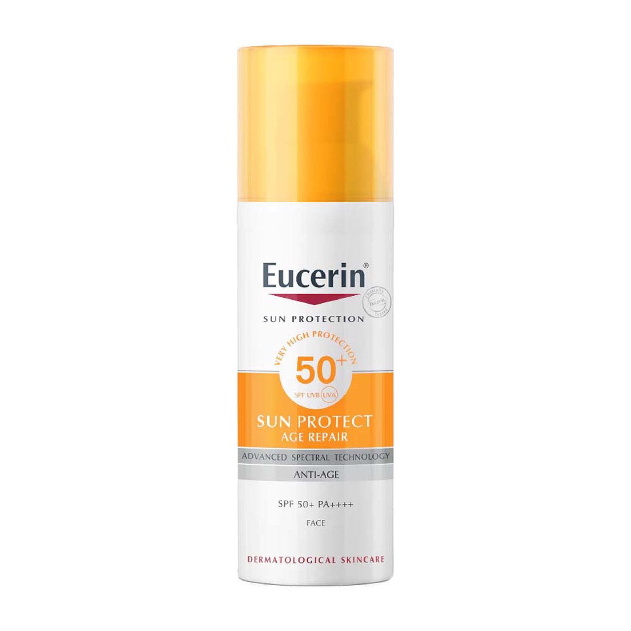 ยูเซอริน ซัน เอจ รีแพร์ ซีรั่ม เอสพีเอฟ 50+ ซีรั่มกันแดดลดเลือนริ้วรอยเนื้อบางเบา ยึดเกาะแนบสนิทกับผิว ผสาน 3 ค่าการปกป้องผิวด้วยค่า SPF50+ PA+++ และ Broad-Spectrum Oxidant Filter ช่วยปกป้องรังสี UVA ได้ยาวนานถึง 8 ชม. พร้อมนาโน-ไฮยาลูรอน ซึมซาบเข้าลดริ้วรอยได้อย่างมีประสิทธิภาพ และลดการทำร้ายคอลลาเจน และไฮยาลูรอนในชั้นผิว จากรังสี High Energy Visible Light 85% จึงลดริ้วรอย จุดด่างดำ ฝ้าแดดฝังลึก เผยผิวเรียบเนียนใส ดูสุขภาพดี