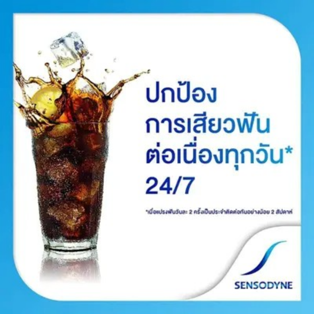 - ยาสีฟันเซ็นโซดายน์ รีแพร์ &โพรเทคท์ สามารถช่วยฟื้นฟู* และปกป้องบริเวณเสียวฟันได้ยาวนาน** - โดยมีส่วนผสมของโซเดียมฟลูออไรด์ และโนวามินที่ช่วยสร้างชั้นปกป้องที่มีคุณสมบัติคล้ายชั้นปกป้องเนื้อฟันตามธรรมชาติ จึงช่วยลดอาการเสียวฟันได้อย่างมีประสิทธิภาพ - มีส่วนผสมของฟลูออไรด์ที่ช่วยให้ฟันแข็งแรง และป้องกันฟันผุ - พิสูจน์แล้วทางคลินิกว่าช่วยลดอาการเสียวฟันได้ทุกวัน** - 9 ใน 10 ทันตแพทย์แนะนำ*** เซ็นโซดายน์ สำหรับผู้มีอาการเสียวฟัน *สร้างชั้นปกป้องเหนือบริเวณที่เสียวฟัน ** เมื่อใช้แปรงวันละ 2 ครั้งเป็นประจำ *** ผลการสำรวจความเห็นจากการสัมภาษณ์ทันตแพทย์ในประเทศไทย 400 คน โดยบริษัทอิปซอส (มาเลเชีย) จำกัด ประเทศมาเลเชีย ระหว่าง ก.ค.-ก.ย. ปีพ.ศ. 2558
