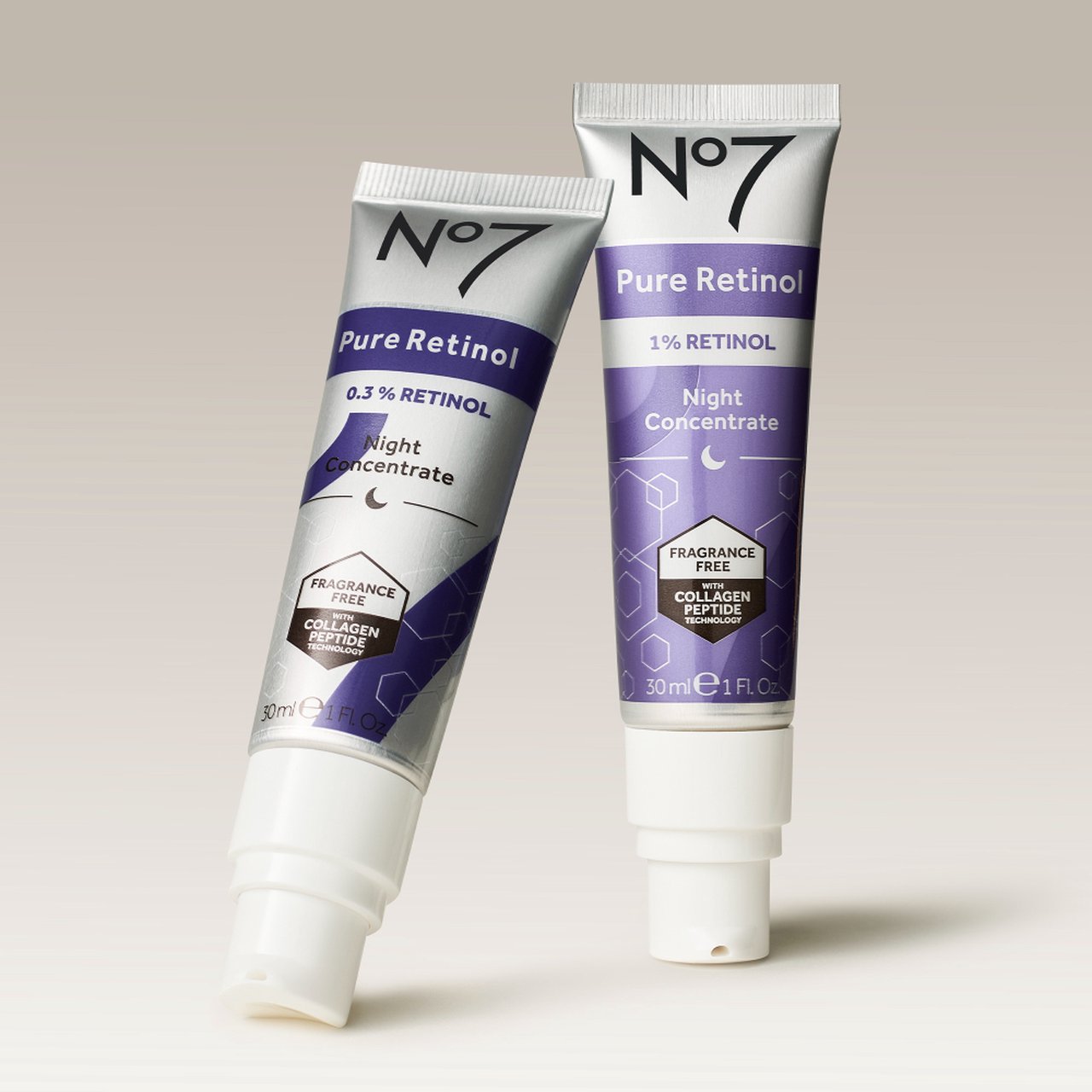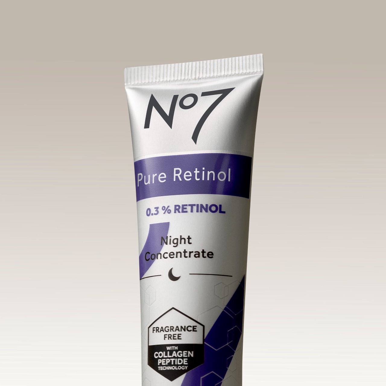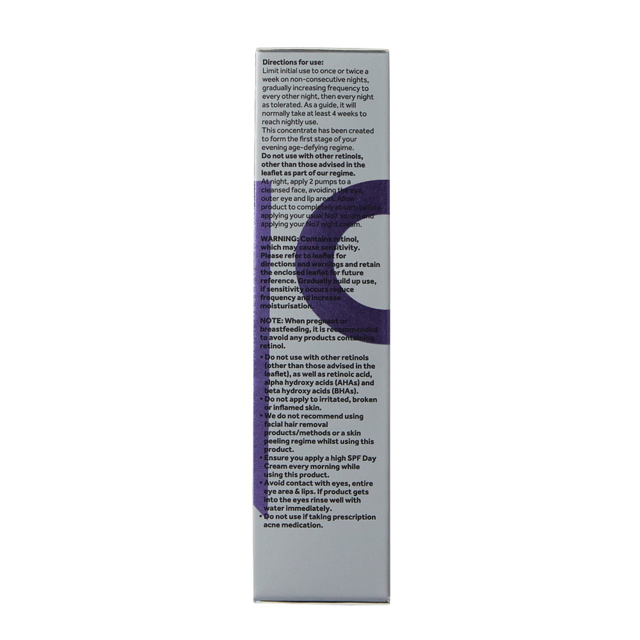 นัมเบอร์เซเว่น เพียว เรตินอล 0.3% เรตินอล ไนท์ คอนเซ็นเทรท เซรั่ม 30 มล. ปลดล็อคพลังของเรตินอล ในแบบที่ไม่เคยมีมาก่อน ครั้งแรกที่นัมเบอร์เซเว่นผสานสองส่วนผสมอันทรงพลังของจากเทคโนโลยีที่ช่วยลดเลือนริ้วรอย เซรั่มสูตรกลางคืนที่ผสานเรตินอลคอมเพล็กซ์รูปแบบใหม่ มาพร้อมเทคโนโลยี Advance Peptide MATRIXYL 3000 PLUS? ช่วยเพิ่มประสิทธิภาพในการลดเลือนริ้วรอย และช่วยผลัดเซลล์ผิว เผยผิวใหม่ ให้ผิวดูอ่อนเยาว์ สุขภาพดี ช่วยให้ริ้วรอยดูจางลง โทนผิวดูสม่ำเสมอ ผิวเรียบเนียน รู้สึกกระชับ ยกขึ้น ดูสว่างขึ้นและเปล่งประกาย รูขุมขนดูเล็กลง เปิดประสบการณ์การใช้เรตินอลที่ช่วยกู้ผิวโทรมในข้ามคืน ผสานส่วนผสมของ -Pure Retinol 0.3%: ในปริมาณที่ผู้เชี่ยวชาญแนะนำสำหรับผู้ที่เริ่มใช้ เห็นผลจริงโดยไม่ทำให้ระคายผิว -Retinol Optimiser 1%: ช่วยผลักเรตินอลให้ซึมเข้าสู่ผิวอย่างช้าๆ เพื่อเพิ่มประสิทธิภาพในการทำงานของเรตินอล -Retinol Soother 0.2%: ช่วยปลอบประโลมผิว และไม่ทำให้ระคายผิว คุณสมบัติและผลลัพธ์ที่ได้: ทันทีที่ใช้: ผิวรู้สึกเนียน นุ่ม ชุ่มชื้น* ใน 2 สัปดาห์ ผิวรู้สึกแน่นขึ้น ดูกระจ่างใส* ใน 12 สัปดาห์ ผิวดูกระชับ เรียบเนียน ริ้วรอยและรอยคล้ำดูลดลง* - เหมาะสำหรับผู้เริ่มใช้เรตินอล - ปราศจากน้ำหอมและพาราเบน - ผ่านการทดสอบทางคลินิก - รับรองโดยผู้เชี่ยวชาญด้านผิวหนัง - ผ่านการทดสอบในผิวคนเอเชีย ผู้ทดลองใช้บอกเป็นเสียงเดียวกันว่าเห็นผลจริง** 92% ผิวดูเรียบเนียนขึ้นหลังใช้เป็นประจำใน 1 สัปดาห์ 98% ไม่รู้สึกระคายผิว 78% รู้สึกว่าผิวแน่นขึ้นใน 1 สัปดาห์ 70% ผิวดูยกกระชับหลังใช้เพียง 1 สัปดาห์ *ผลทดสอบความพึงพอใจในอาสาสมัครอย่างน้อย 93 คน โดย บู๊ทส์ สหราชอาณาจักร ปี พ.ศ. 2562 ผลลัพธ์ที่ได้ขึ้นกับสภาพผิวแต่ละบุคคล และเมื่อใช้เป็นประจำอย่างต่อเนื่อง **ผลทดสอบความพึงพอใจในอาสาสมัคร 50 คน โดยซีมีโก้ ประเทศจีน ปี พ.ศ. 2565 ผลลัพธ์ที่ได้ขึ้นกับสภาพผิวแต่ละบุคคล และเมื่อใช้เป็นประจำอย่างต่อเนื่อง วิธีใช้ : เริ่มต้นให้ลองใช้เพียง 1-2 ครั้งต่อสัปดาห์ เว้นระยะ 2-3 วัน ระหว่างการใช้ครั้งแรกและครั้งที่สอง จึงค่อยๆเพิ่มความถี่ในการใช้เป็นวันเว้นวัน และเพิ่มความถี่ในการใช้ทุกคืน โดยทั่วไปจะใช้เวลาประมาณ 4 สัปดาห์ ที่ผิวจะปรับสภาพให้คุ้นชินกับเรตินอลจนสามารถทาได้ทุกคืน - หลังล้างหน้า กดเซรั่มลงบนฝ่ามือประมาณ 2 ปั๊ม ทาให้ทั่วหน้าและลำคอ เว้นรอบดวงตา และรอบริมฝีปาก - นวดให้ครีมซึมลงสู่ผิวแล้ว ทานัมเบอร์เซเว่นเซรั่มและครีม กรุณาอ่านวิธีการใช้และคำเตือนให้ละเอียดก่อนการใช้ครั้งแรก และเก็บแผ่นพับไว้ ข้อแนะนำในการใช้หร