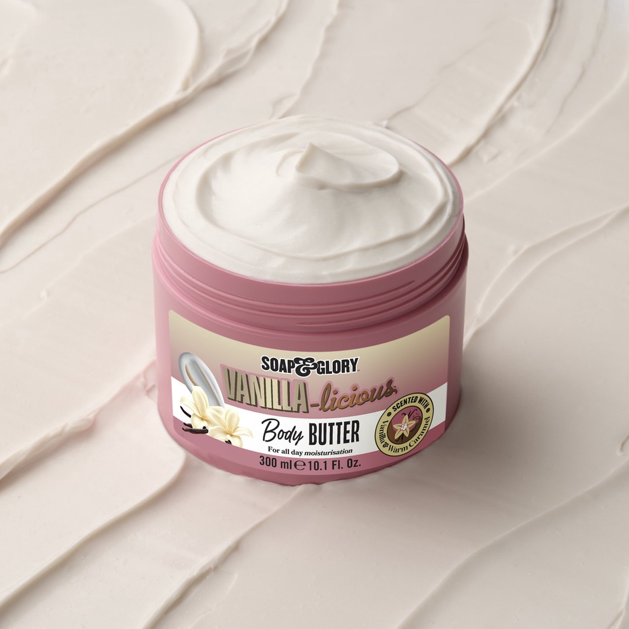 ผลิตภัณฑ์บำรุงผิวกาย ที่ช่วยโอบล้อมผิวด้วยความนุ่มละมุน อุดมไปด้วย shea butter, cocoa butter และ coconut oil ที่ช่วยให้ความชุ่มชื้นยาวนานตลอดวัน น่าทะนุถนอมในทุกสัมผัส คุณสมบัติและผลลัพธ์ที่ได้ - มีกลิ่นหอมของ Vanilla & Warm Caramel - เนื้อครีมเนียนนุ่มและเข้มข้น ซึมซาบเร็ว - มอบความชุ่มชื้นยาวนาน ทำให้ผิวรู้สึกเนียนนุ่มและเรียบลื่นดุจใยไหม วิธีใช้ หลังอาบน้ำ ลูบไล้บอดี้บัทเทอร์ให้ทั่วผิวกาย เน้นบริเวณที่แห้งเป็นพิเศษ เช่น ข้อศอก หัวเข่า และส้นเท้า ข้อแนะนำในการใช้หรือห้ามใช้ 1. โปรดทดสอบการแพ้ก่อนใช้ผลิตภัณฑ์ 2. ระวังอย่าให้เข้าตา หากผลิตภัณฑ์เข้าตา ควรล้างออกด้วยน้ำสะอาดทันที 3. ห้ามรับประทาน 4. เก็บให้พ้นมือเด็ก 5. เก็บให้พ้นจากความร้อนและแสงแดด 6. ผลิตภัณฑ์ออกแบบมาเพื่อใช้สำหรับผิวของผู้ใหญ่เท่านั้น Country of Origin: United Kingdom Ingredients Aqua (Water), Butyrospermum Parkii (Shea) Butter, Glycerin, Cetearyl Alcohol, Cocos Nucifera (Coconut) Oil, Glyceryl Stearate, PEG-100 Stearate, Theobroma Cacao (Cocoa) Seed Butter, Parfum (Fragrance), Dimethicone, Phenoxyethanol, Dipropylene Glycol, Caprylyl Glycol, Carbomer, Ethylhexylglycerin, Hydroxyethylcellulose, Tetrasodium EDTA, BHT, Sodium Hydroxide, Glyceryl Acrylate/Acrylic Acid Copolymer, Citric Acid, Disodium Phosphate, Polysorbate 60, Tocopherol, Sodium Phosphate, Vanillin. *กรุณาอ้างอิงจากฉลากสินค้าจริง